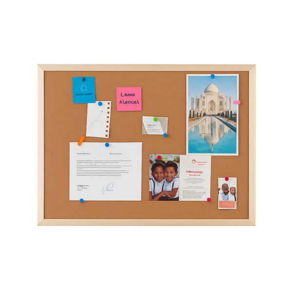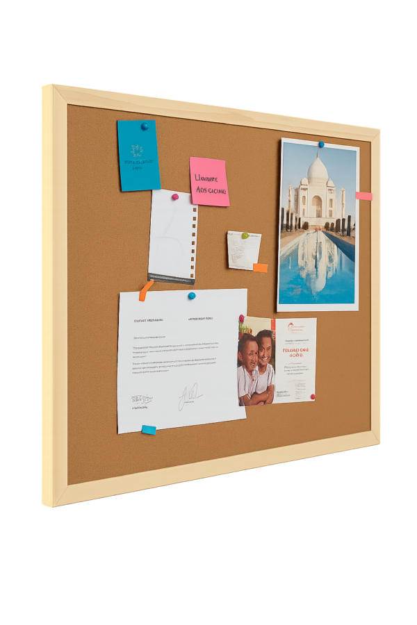 Este corchógrafo está disponible en varios tamaños, lo que permite adaptarlo fácilmente a oficinas, hogares, colegios, aulas, salas de reuniones y negocios. Es ideal para fijar documentos, fotografías, calendarios, avisos o mensajes importantes mediante chinches o pines.